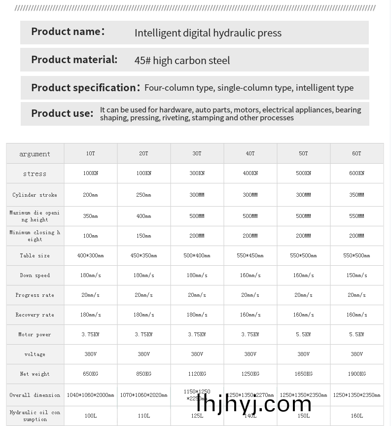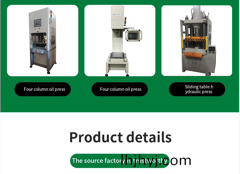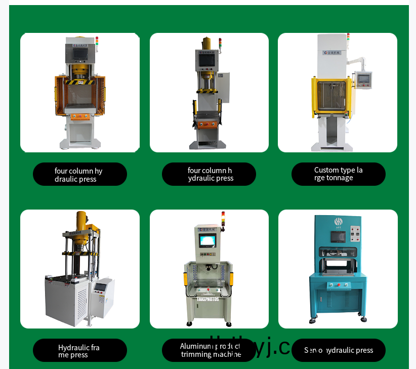 - 液壓係統:包含液壓泵、油缸、液壓閥等,將電機動力轉化爲液壓能,驅動執行機構(gou)(如壓頭)運動。