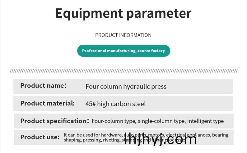 3. 粉末製品成型:可(ke)用于粉末製品、磨料製品的壓製成形,如粉(fen)末冶金(jin)零件、砂輪等的生産(chan)。